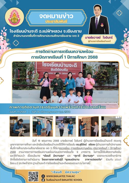 ผู้อำนวยการสำนักงานเขตพื้นที่การศึกษาประถมศึกษาเชียงราย เขต 3 ที่ได้มาตรวจเยี่ยม การเตรียมความพร้อม เปิดภาคเรียนที่ 1 ปีการศึกษา 2568