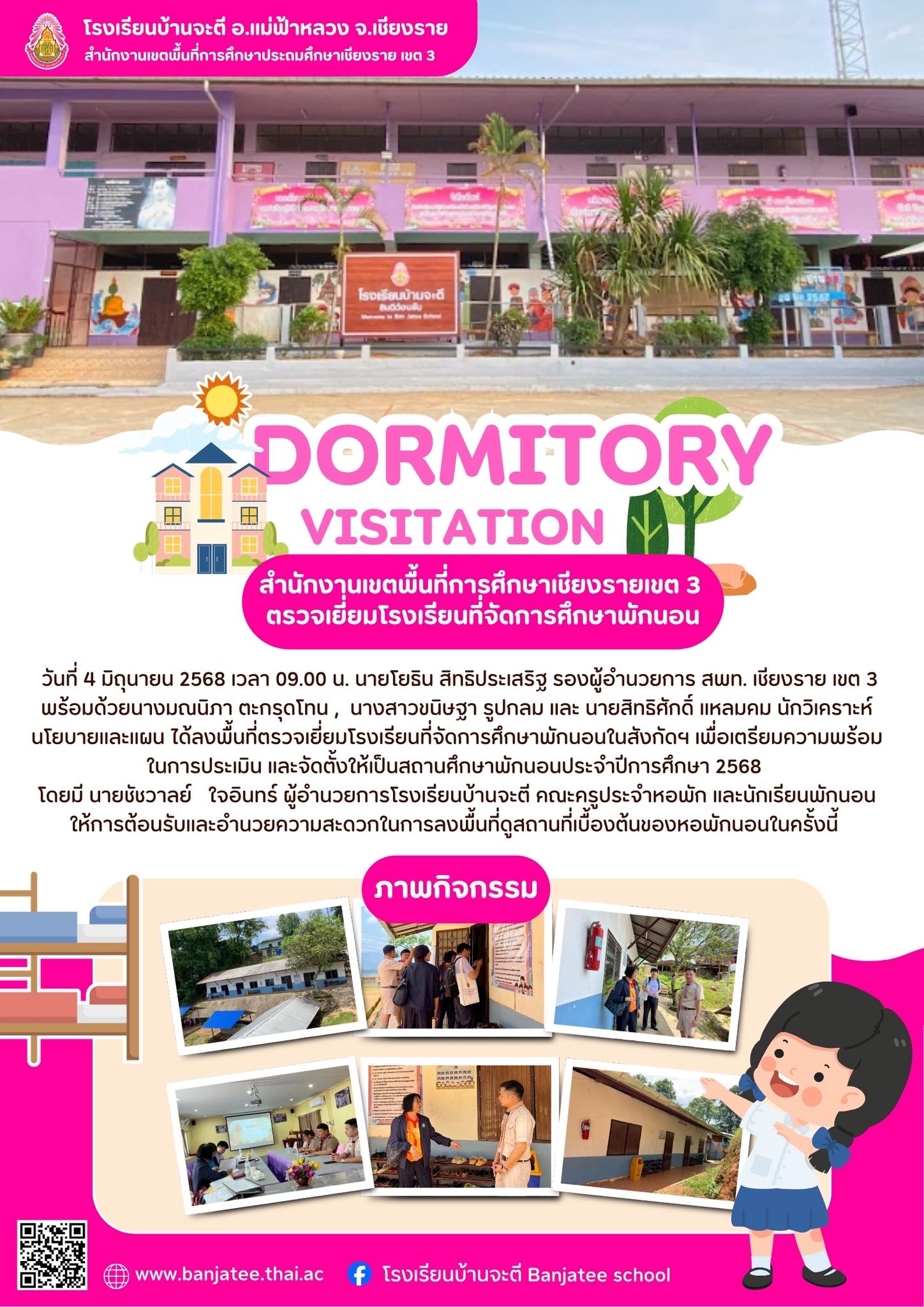 นายโยธิน สิทธิประเสริฐ รองผู้อำนวยการ สพท. เชียงราย เขต 3 พร้อมด้วยนางมณนิภา ตะกรุดโทน , นางสาวขนิษฐา รูปกลม และ นายสิทธิศักดิ์ แหลมคม นักวิเคราะห์นโยบายและแผน ได้ลงพื้นที่ตรวจเยี่ยมโรงเรียนที่จัดการศึกษาพักนอนในสังกัดฯ เพื่อเตรียมความพร้อมในการประเมิน และจัดตั้งให้เป็นสถานศึกษาพักนอนประจำปีการศึกษา 2568 โดยมี นายชัชวาลย์ ใจอินทร์ ผู้อำนวยการโรงเรียนบ้านจะตี คณะครูประจำหอพัก และนักเรียนพักนอน ให้การต้อนรับและอำนวยความสะดวกในการลงพื้นที่ดูสถานที่เบื้องต้นของหอพักนอนในครั้งนี้